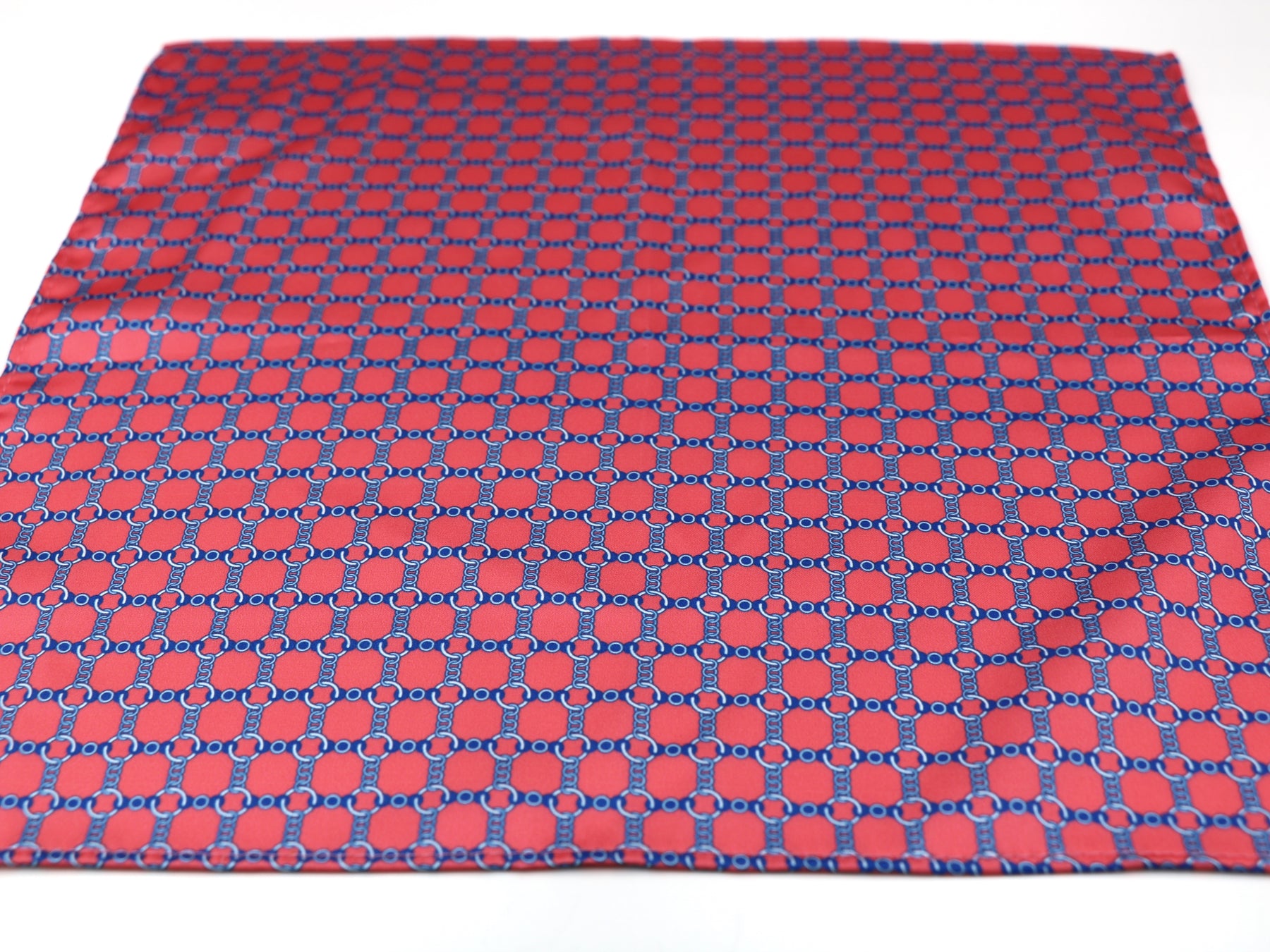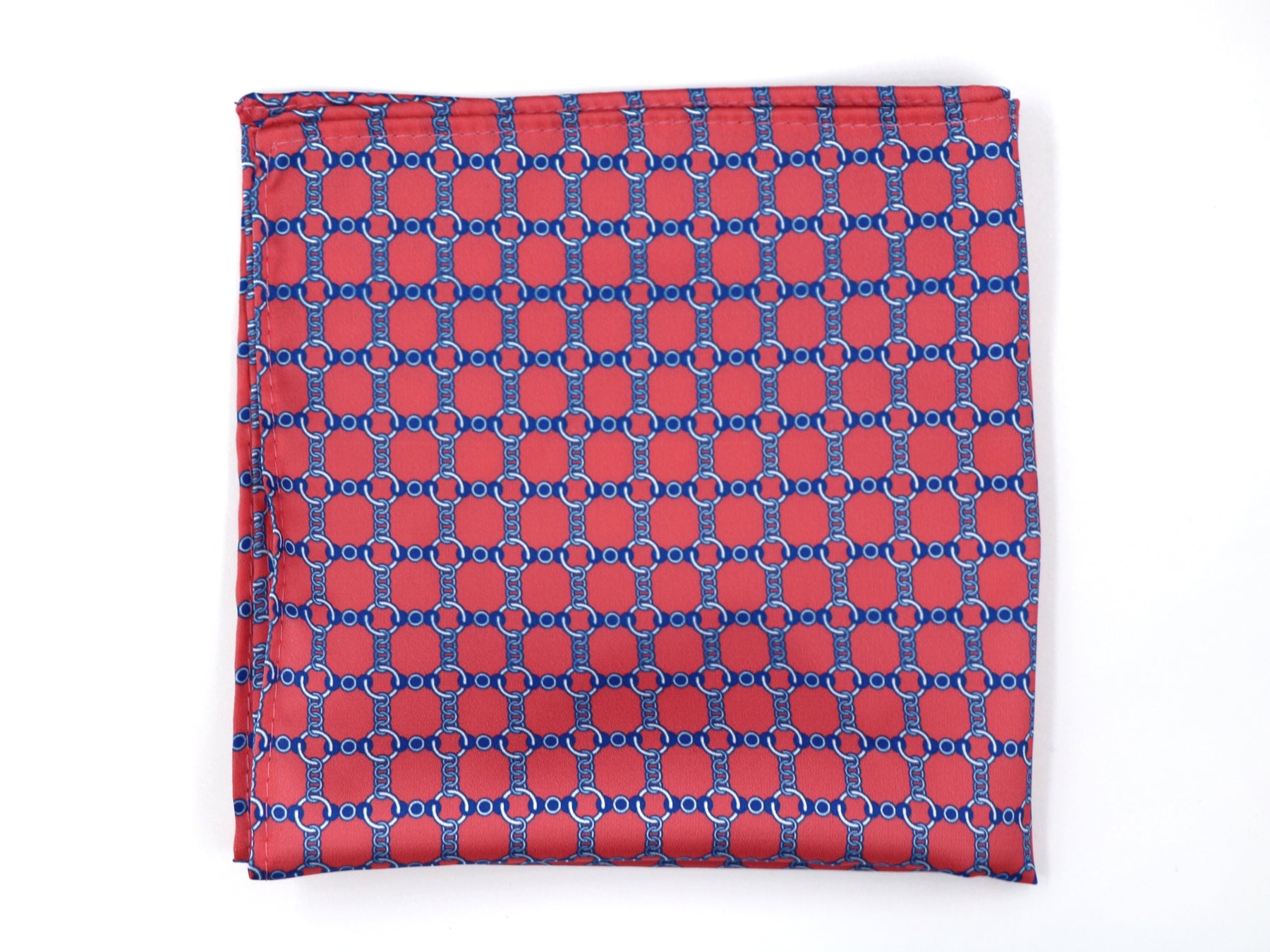 100% Silk Pocket Square – Pink Blue Chain Pattern Workwear Accessory