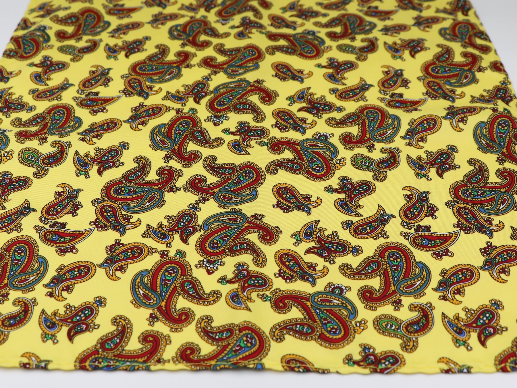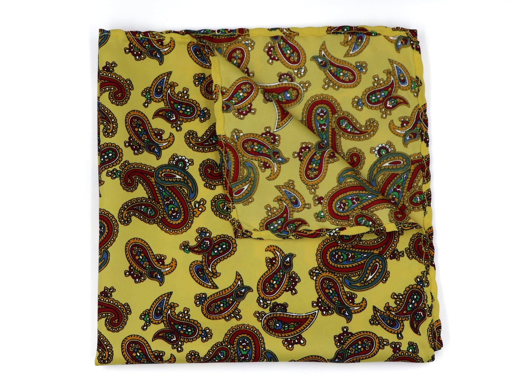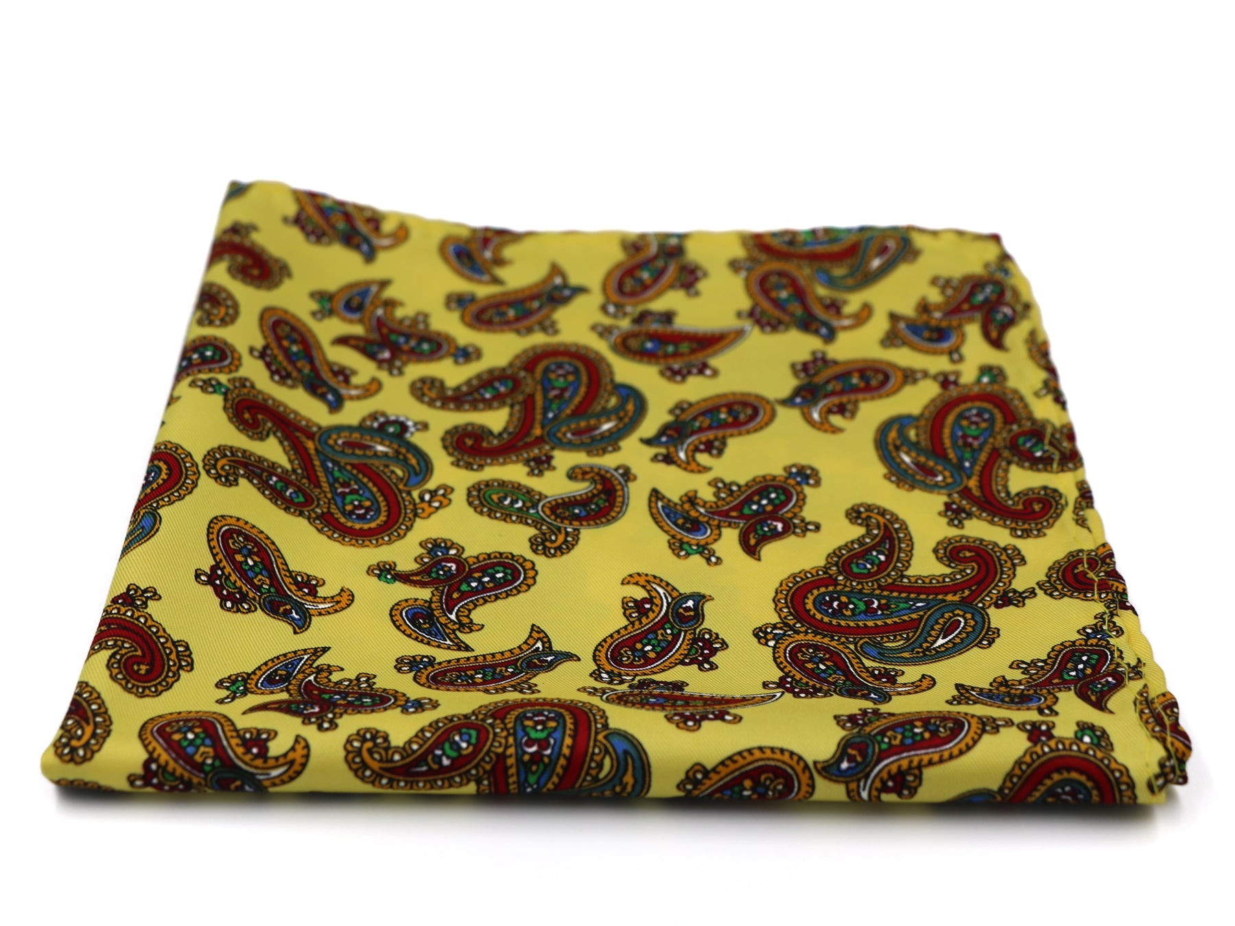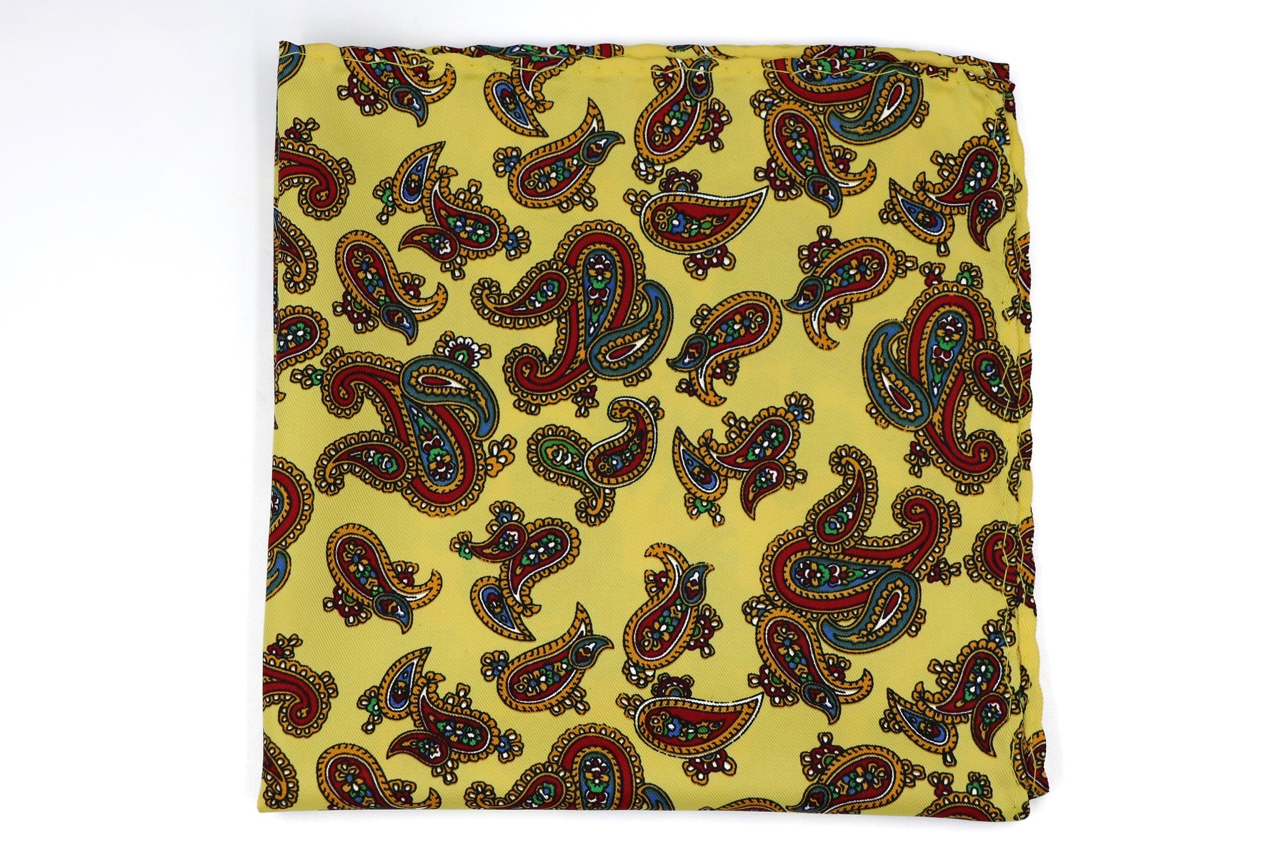 Dapper Yellow Paisley Pocket Square - Extra Large Silk Feel Handkerchief