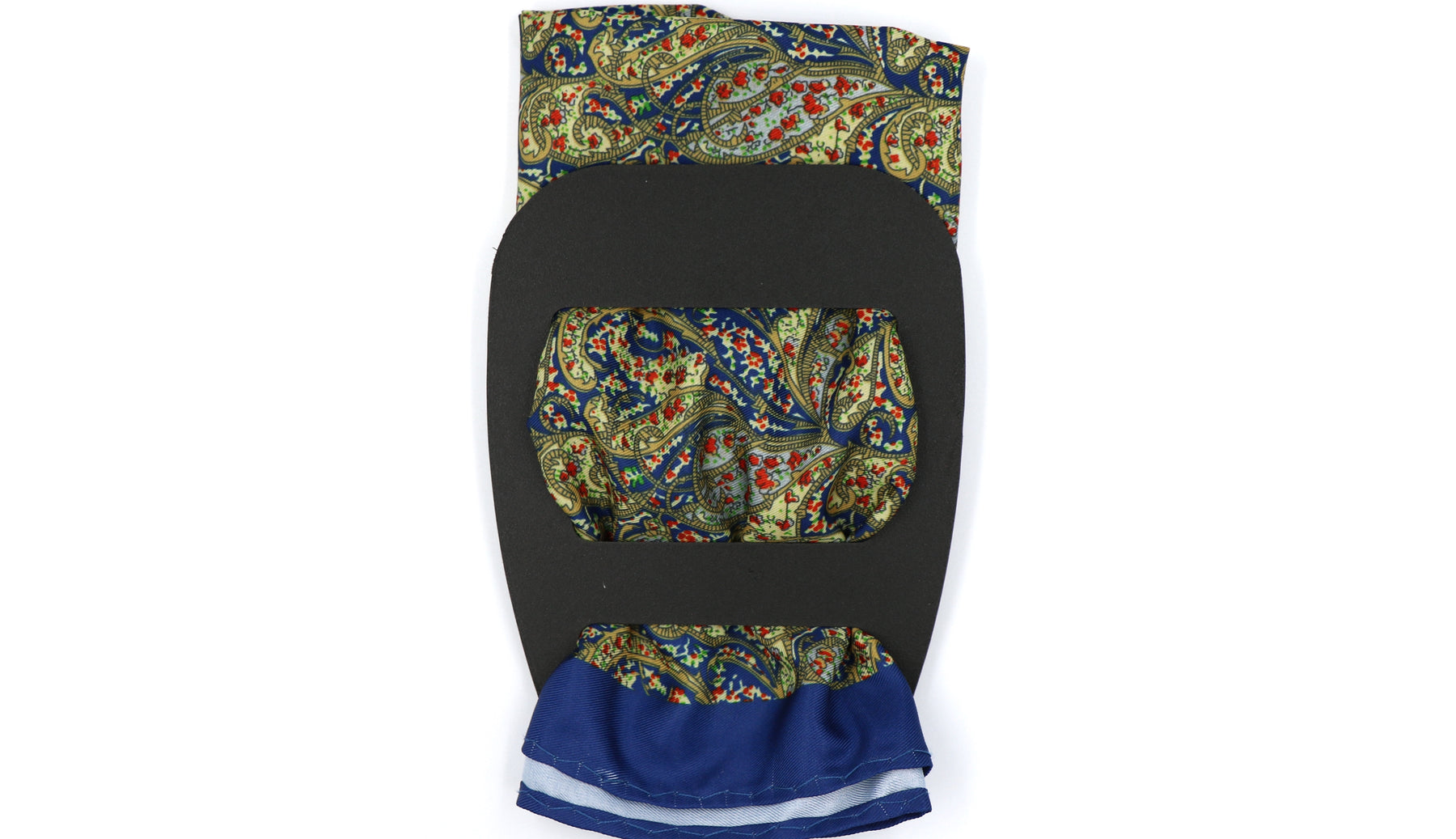 This large, mens executive pocket square features a detailed paisley print in rich colours of navy, red, and neutral tones. Measuring a generous 32cm by 32cm, it's designed to be your go-to handkerchief.